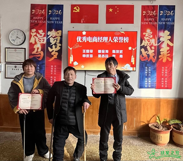 绿星之家创始人之一王洪法(中)为“优秀电商经理人”颁发荣誉证书