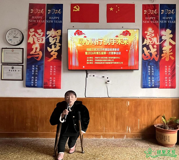 理事长齐乾坤作年度总结报告。他详细阐述了2025年机构在残疾人服务、社区养老、弱势群体帮扶等领域的成果,并提出2026年发展规划:“我们将持续深入学习‘十五五’规划精神,把‘人民至上’内化于心、外化于行,在齐鲁大地谱写残健融合、老有所安、弱有所扶的和谐新篇章。”