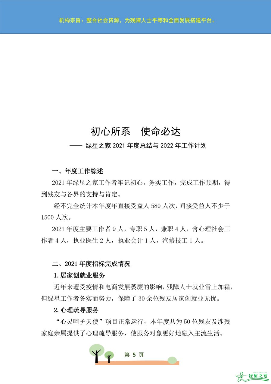 绿星之家2021年度工作总结与2022年工作计划