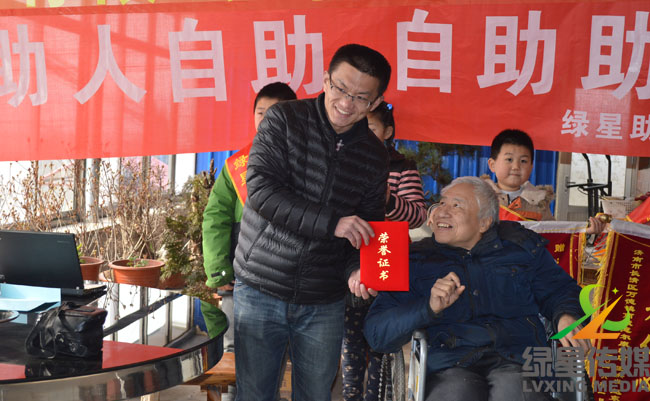 绿星助残中心理事长阎铁鲁、执行理事齐乾坤、监事梅廷忠为和树兰、董国泽、刘兵、冯茂泉等工作者颁发了优秀工作者荣誉证书。