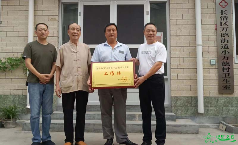2022年8月27日上午,山东体育学院教授、山东中医药研究院特聘专家王洪勋先生携太太与弟子善生中医文化传承平台负责人方恒君、诠家康小儿推拿负责人徐照生等来济南市长清区万德街道小万德村卫生室指导工作,举行“王洪勋靶点针推疗法传承工作站”授牌仪式并寄语弟子冯茂泉“敬天地之大德,拔苍生之疾苦”。