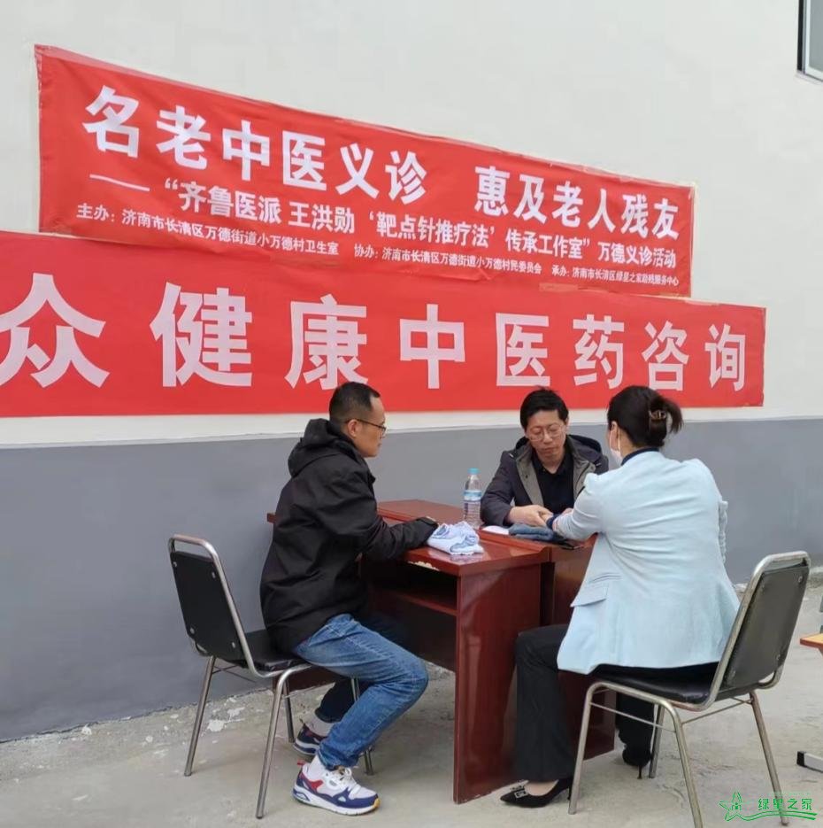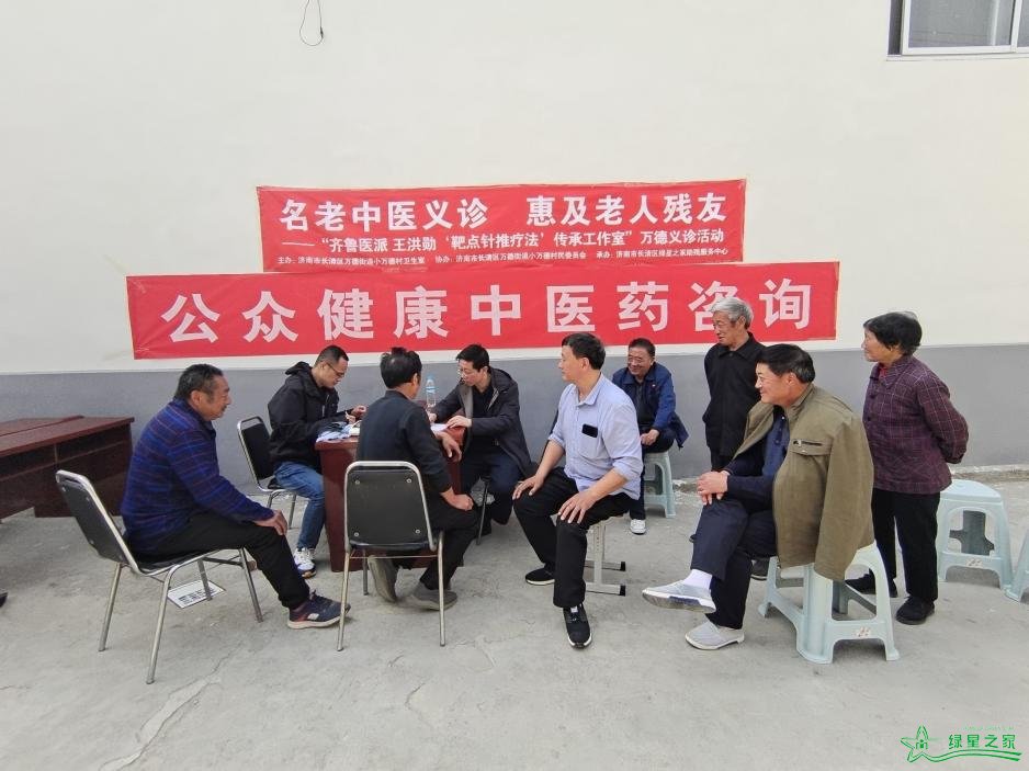4月18日上午,绿星之家助残服务中心联合济南名老中医、万德中心卫生院齐聚小万德卫生室暨绿星社群名老中医诊疗服务站,开展“春光正宜时,百里送医暖”济南名老中医基层设站授徒义诊活动。