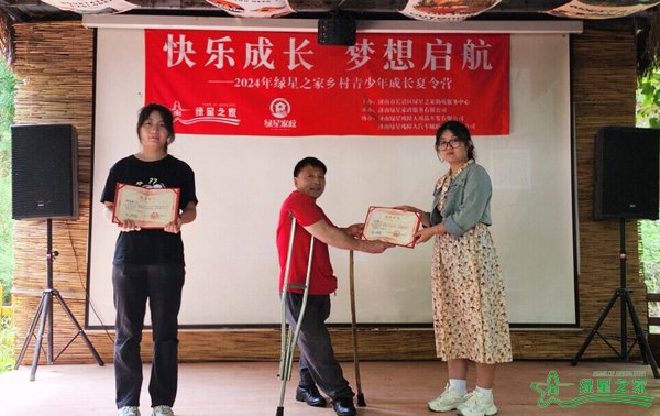 绿星之家理事也是创始人之一的王洪法同志为志愿者颁发荣誉证书。