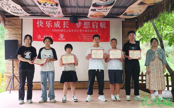8月9日上午,绿星之家为期30天的“梦想启航”夏令营胜利结营,结营式在万德街道田庄村西河坝农家乐园举行。