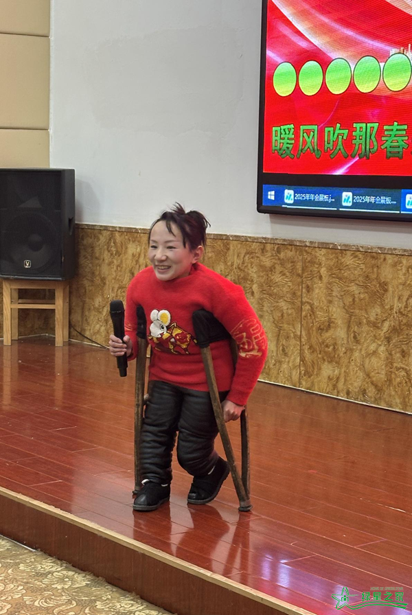 生活在乡村的残友刘天香以一曲《火苗》把年会推向最高潮,观众为她敢登台,倾情演唱而鼓掌,还有的静悄悄地流下感动的但又温暖的泪水……