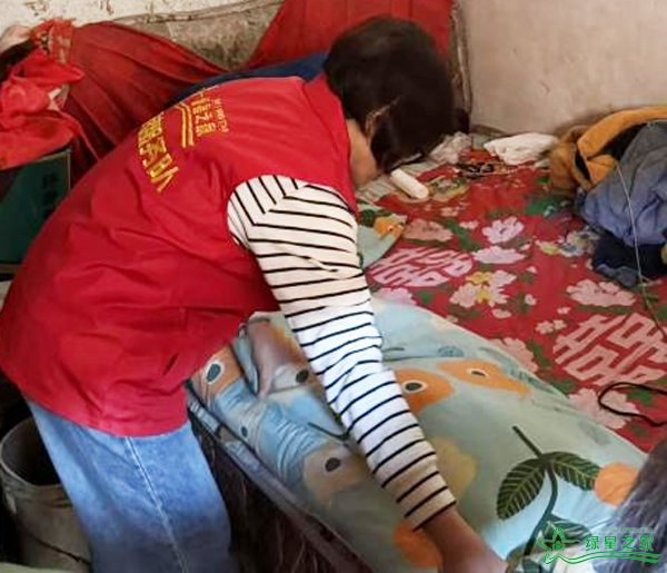 志愿者们分工协作:细心整理杂乱的床铺。耐心整理杂乱的房间,当积灰的瓷砖重现光泽,当落地的银发清扫干净,蒙尘的相框擦得锃亮,王奶奶握着志愿者的手反复念叨“谢谢孩子们,家里多少年没这么干净过了……,现在的社会真好,感谢党,感谢政府,感谢你们志愿者,在实实在在为我们老人服务……”