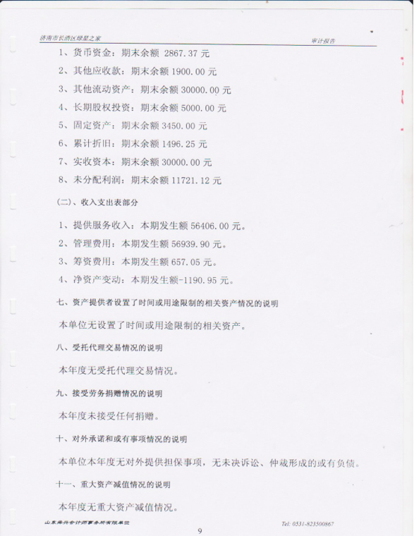 (七)财务报告: 详见审计报告(另附)