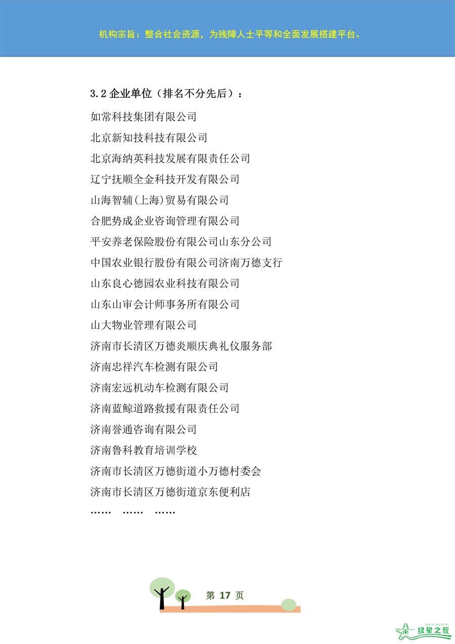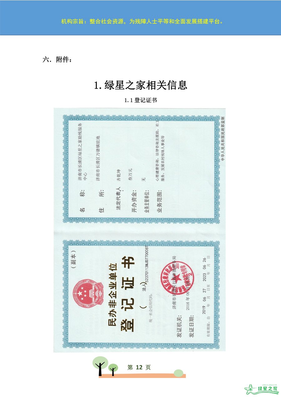 名称:济南市绿星之家助残服务中心