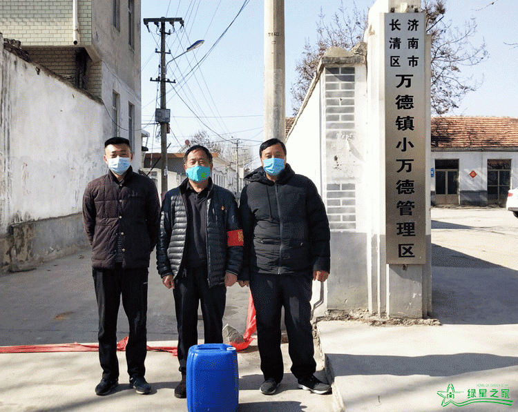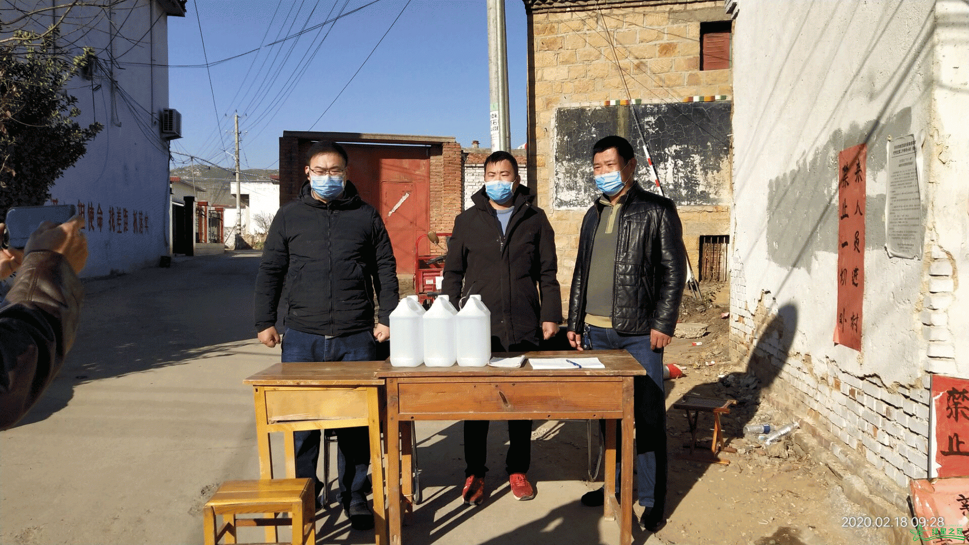 济南市长清区万德街道小万德村委工作人员韩丹超、徐富民管理区工作人员接受酒精捐赠