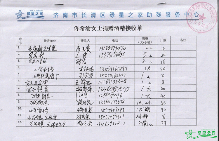 2月17日经“爱山东公益创新平台”牵线搭桥,佟希渝女士捐赠给绿星之家助残服务中心360斤酒精(5大桶,20小桶,总计25桶),绿星之家留下4小桶用于办公室消毒,其余酒精全部由绿星之家工作者转交至万德街道驻地周边各防疫网点。