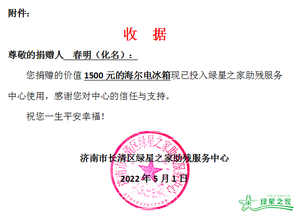 春明曾是绿星之家的受助者,他在绿星之家接受过电商培训,经过多年的不懈努力,终于自食其力。今天他反哺绿星之家,恰如古语所云:“爱出者爱返,福往者福来”!他在用行动表达着自己的谢意,也在激励绿星人努力工作,助残无悔!