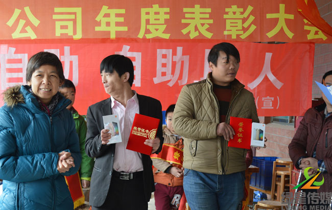 9.绿星电商——凯瑞公司总经理周云生(左三)为王磊、陈友武发放奖品(左一、左二)