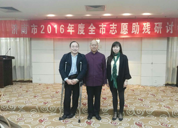 2016年4月1日齐乾坤、刘希勇代表绿星之家助残服务中心参加济南市残联组织的志愿助残座谈会,会上我们认真聆听了各位代表的发言,会下也与部分代表就如何开展助残工作进行了座谈。