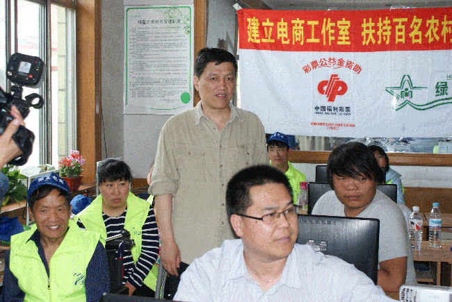 山东省社会组织管理局徐建国(中)在看残障人操作网店