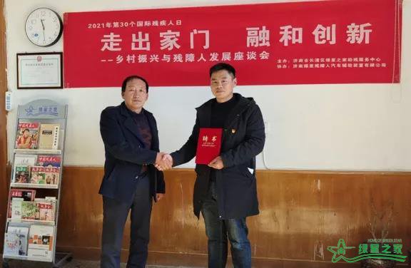 绿星之家创始人之一齐乾坤向新晋理事共产党员蒋德宝(右)颁发聘书