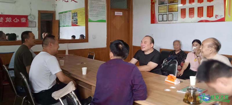 绿星之家负责人齐乾坤(后排左一)向来宾介绍乡村残友康复需求概况。