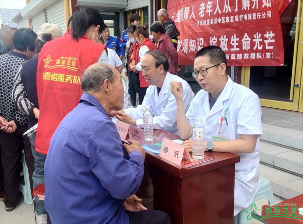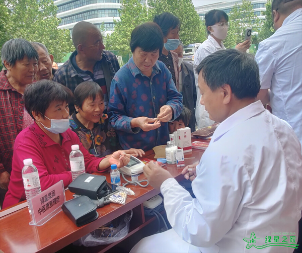 绿星之家副理事长、泉润康复理疗公司法人冯茂泉在为乡亲们义诊。