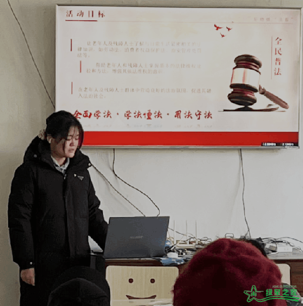 1月14日,绿星之家联合山东中医药大学志愿者团队,在万德街道上营村开展了一场面向老年人和残障人士的“回乡看齐鲁‘全民普法’”讲座。