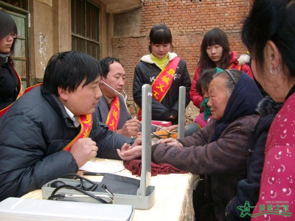 冯大夫(左一)为老年人、残疾人义诊中